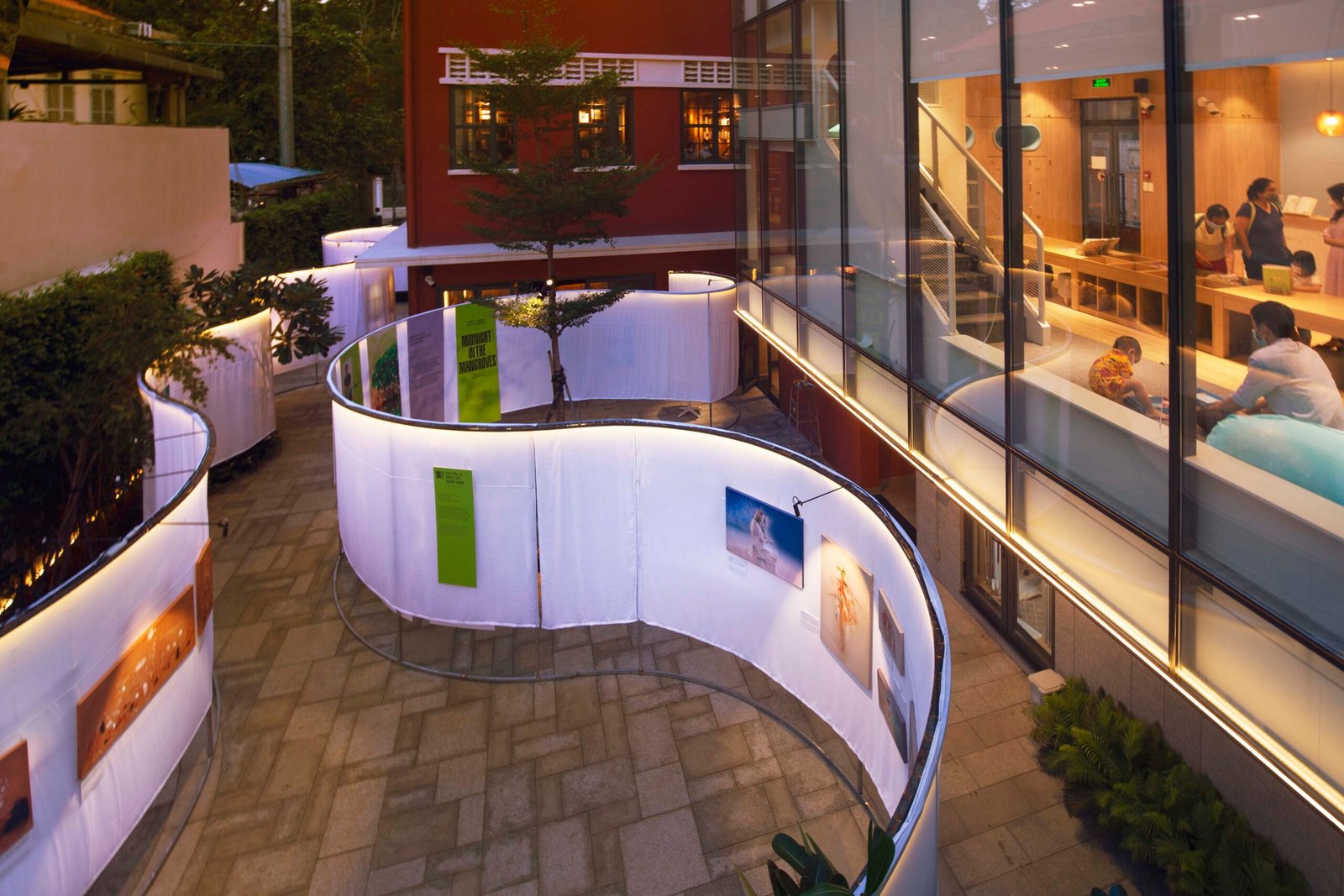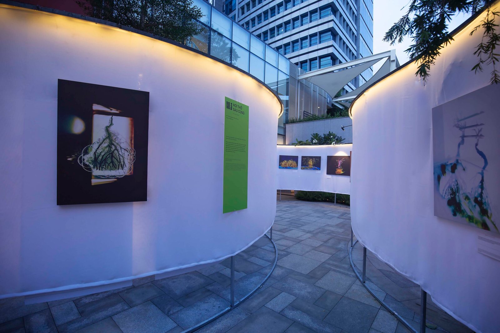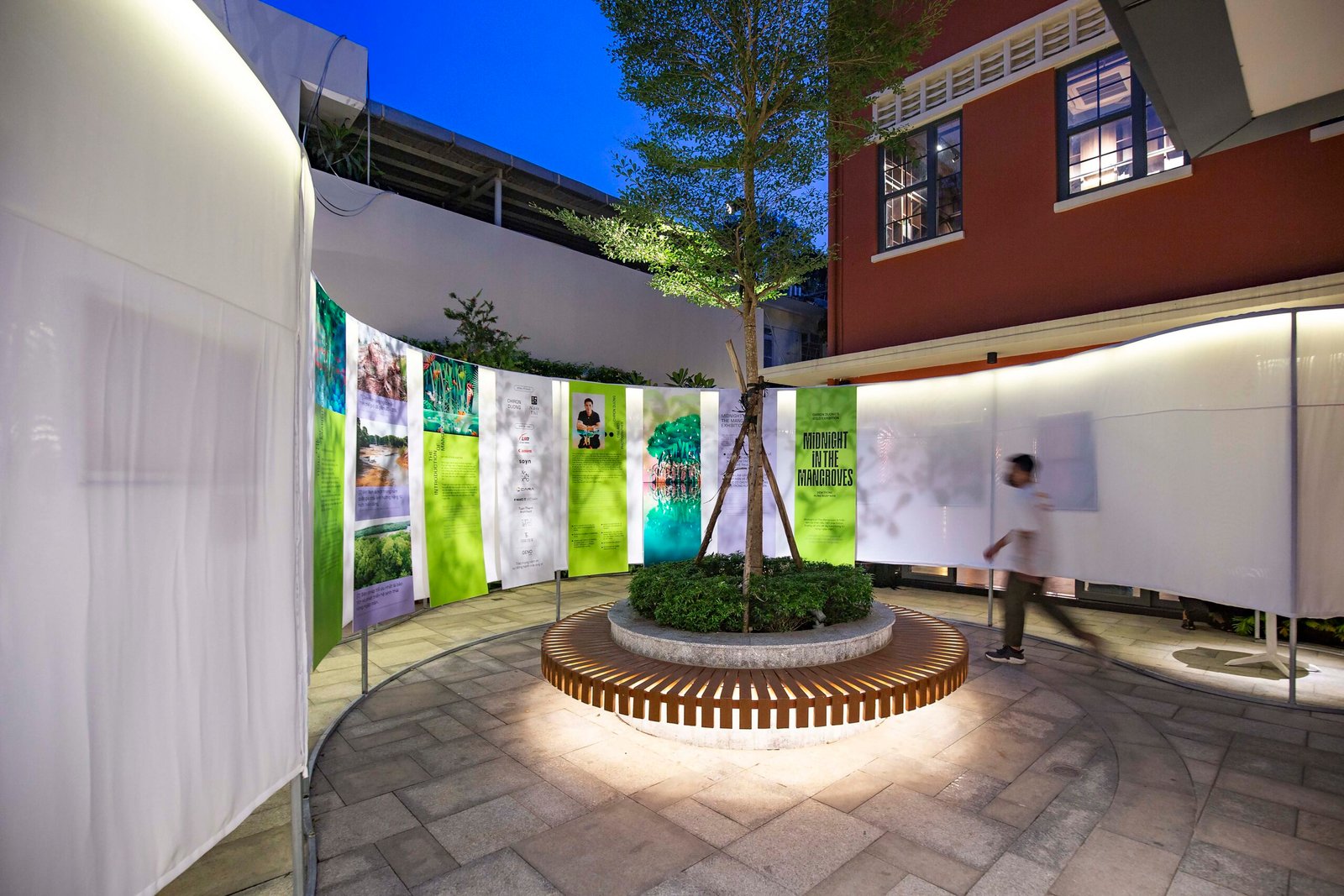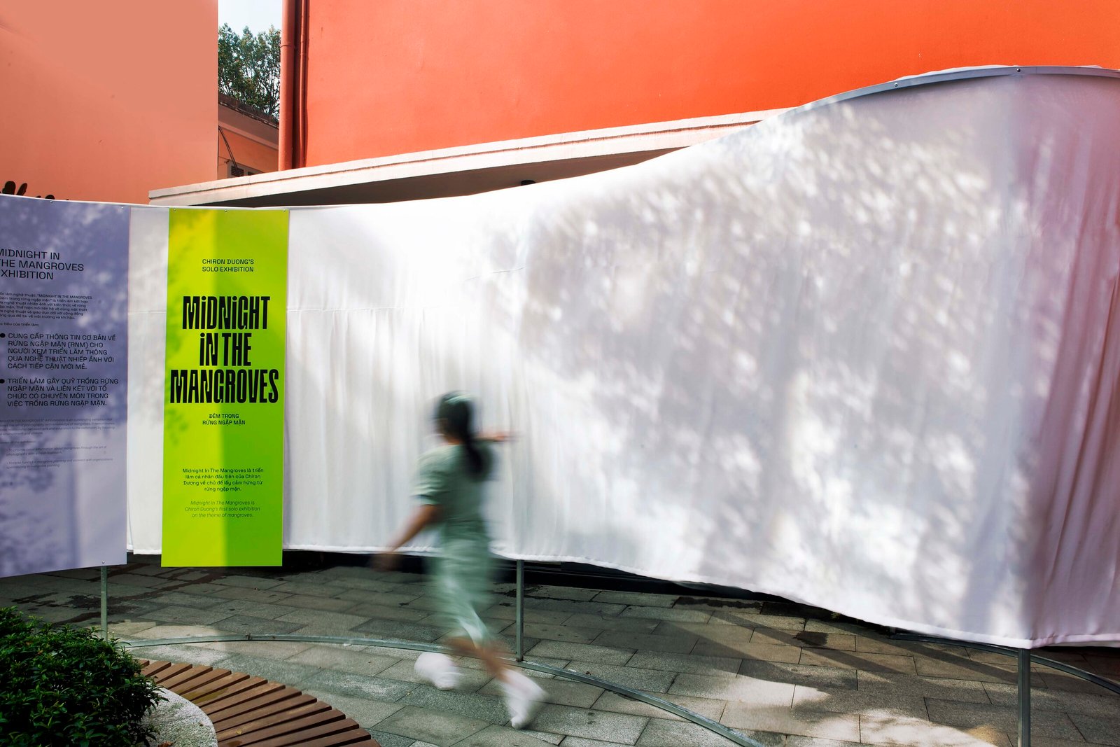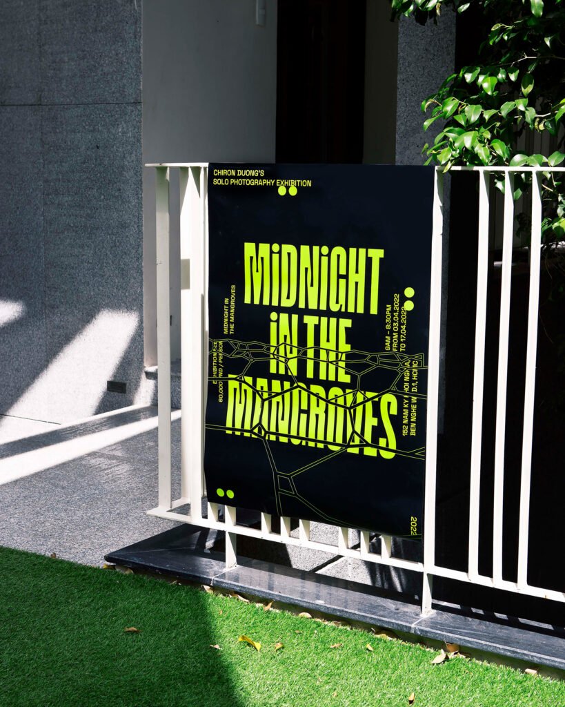 The visual system of the exhibition was developed based on the geography of the mangroves, including water and shallow areas interwoven with the roots of trees. With the theme, the mystery of the mangroves, we have associated the eyes of mysterious creatures behind the forest trees from the work of Chiron Duong. Combining the above ideas, a graphic system with mysterious colors of mangroves was formed. Based on mangrove studies & researches, we decided to design a typeface for this project. The main inspiration of the typeface is from the characteristic branches and roots of the mangrove forest and the close eyes of the specific creatures in the forest from underwater to terrestrial.
